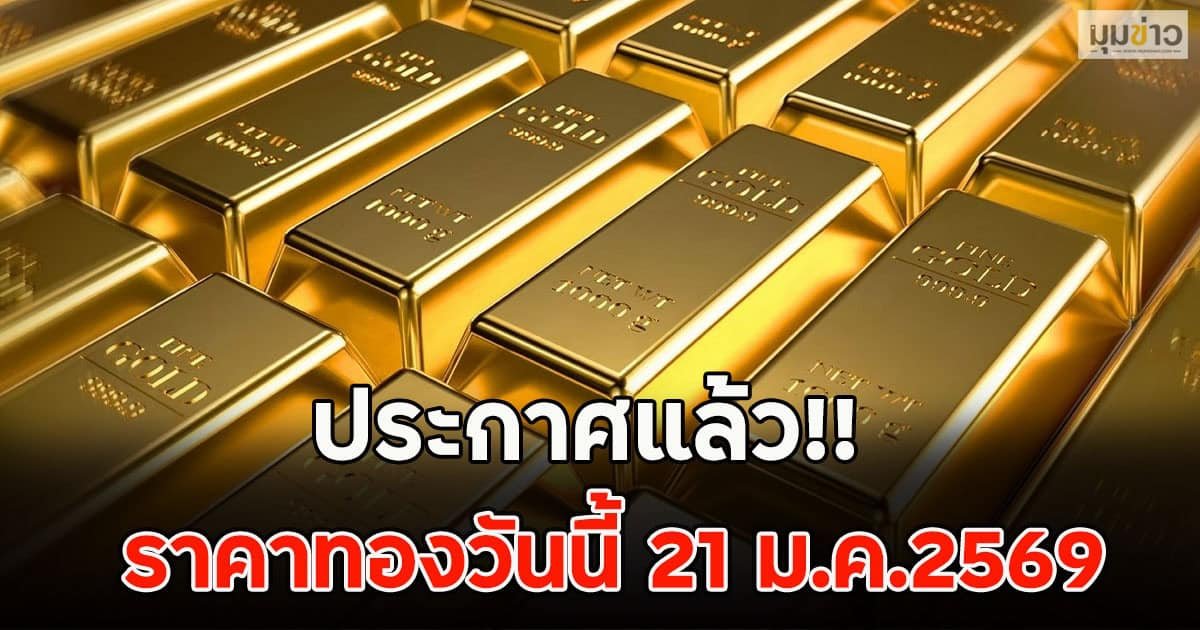 ราคาทองคำประจำวันที่ 21 ม.ค.2569 ปรับเพิ่มขึ้น 1,050 บาท เปรียบเทียบกับราคาสุดท้ายของวันที่ 20 ม.ค.ที่ผ่านมา