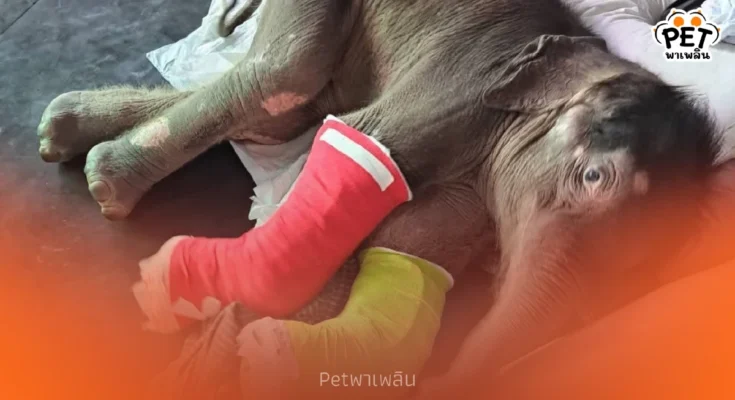 “พังข้าวต้ม” ลูกช้างป่าพลัดหลง ฟื้นตัวดีขึ้นต่อเนื่อง! ทีมสัตวแพทย์เผยเริ่มยืนได้เองแล้ว