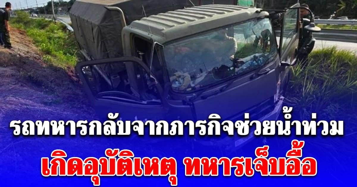 รถทหารกลับจากภารกิจช่วยน้ำท่วม เกิดอุบัติเหตุ ทหาร 7 นายผู้เสียสละเจ็บ