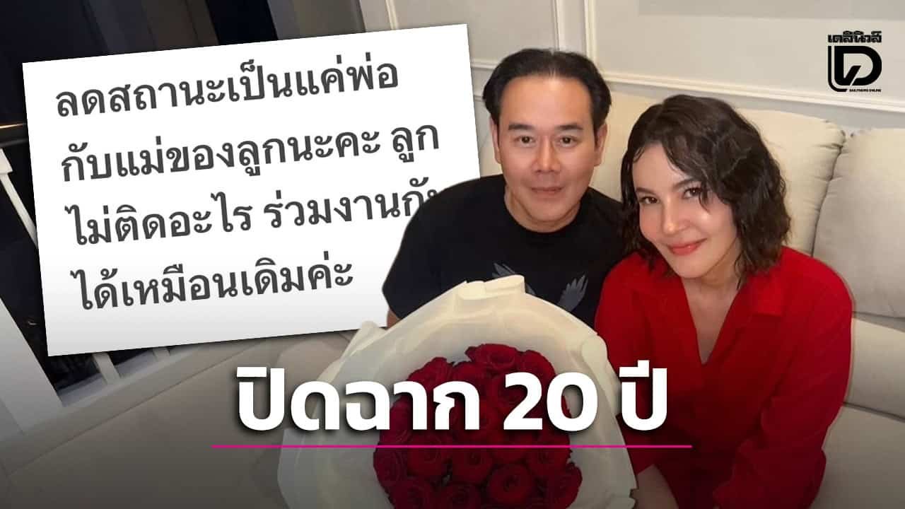 โดย ธัญญ่า ได้โพสต์ภาพข้อความผ่านอินสตาแกรมส่วนตัว ระบุว่า “ลดสถานะเป็นแค่พ่อกับแม่ของลูกนะคะ ลูกไม่ติดอะไร ร่วมงานกันได้เหมือนเดิมค่ะ” และเขียนแคปชั่นไว้ว่า “20 ปีบริบูรณ์”